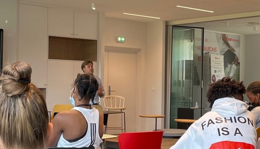 Après être intervenues pour se présenter, les équipes sourcing, représentées par Emeric DESCOMBES, ont proposé aux étudiants de découvrir de manière ludique les liens entre sport et entreprise.