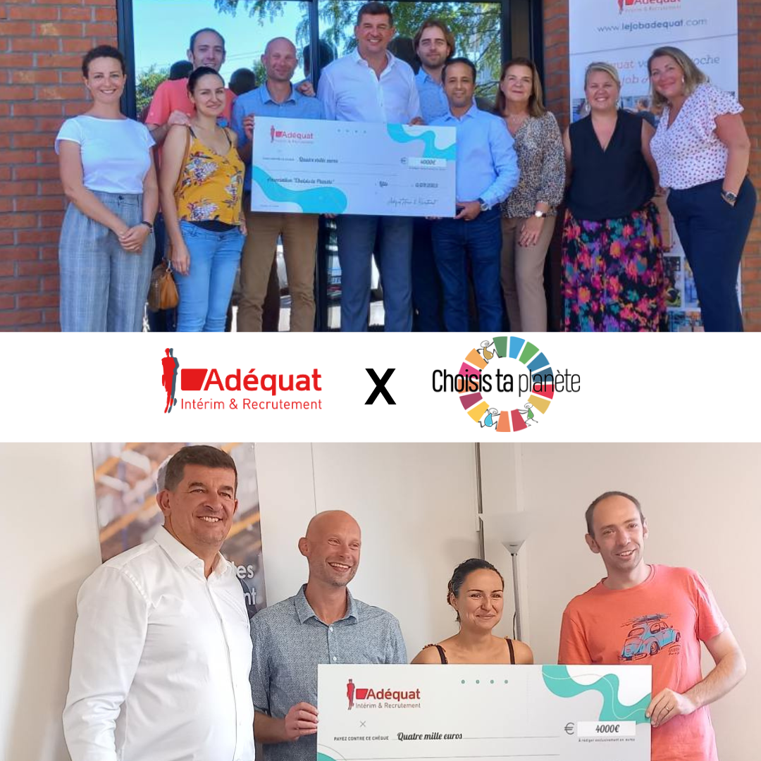 Adéquat a réalisé son premier bilan carbone. Les collaborateurs du groupe ont été activement impliqués dans ce dernier. Leur engagement a donc été récompensé en leur offrant la possibilité de remettre un chèque de 4000€ à l’association de leur choix. Ils ont donc décidé de l’offrir à l’association Choisis Ta Planète. Cette collaboration s’aligne parfaitement avec la volonté d’Adéquat de transformer ses pratiques pour soutenir la transition écologique. Adéquat tient à remercier sincèrement ses collaborateurs de la région Hauts de France