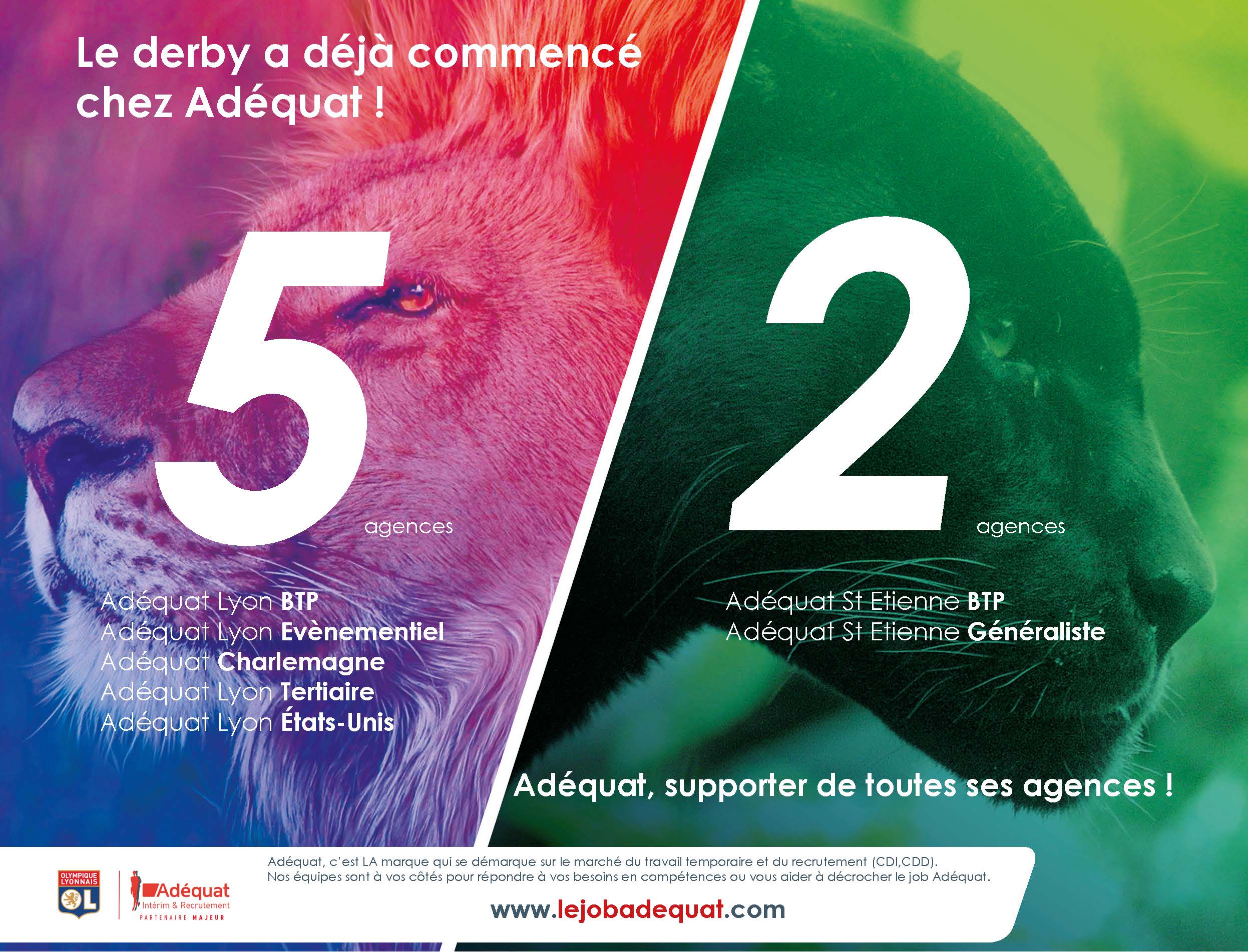 A l’occasion du traditionnel derby, entre l’Olympique Lyonnais et l’AS Saint-Etienne, le dimanche 1er mars 2020, Adéquat, partenaire majeur du club rhodanien, organise son derby des agences !
