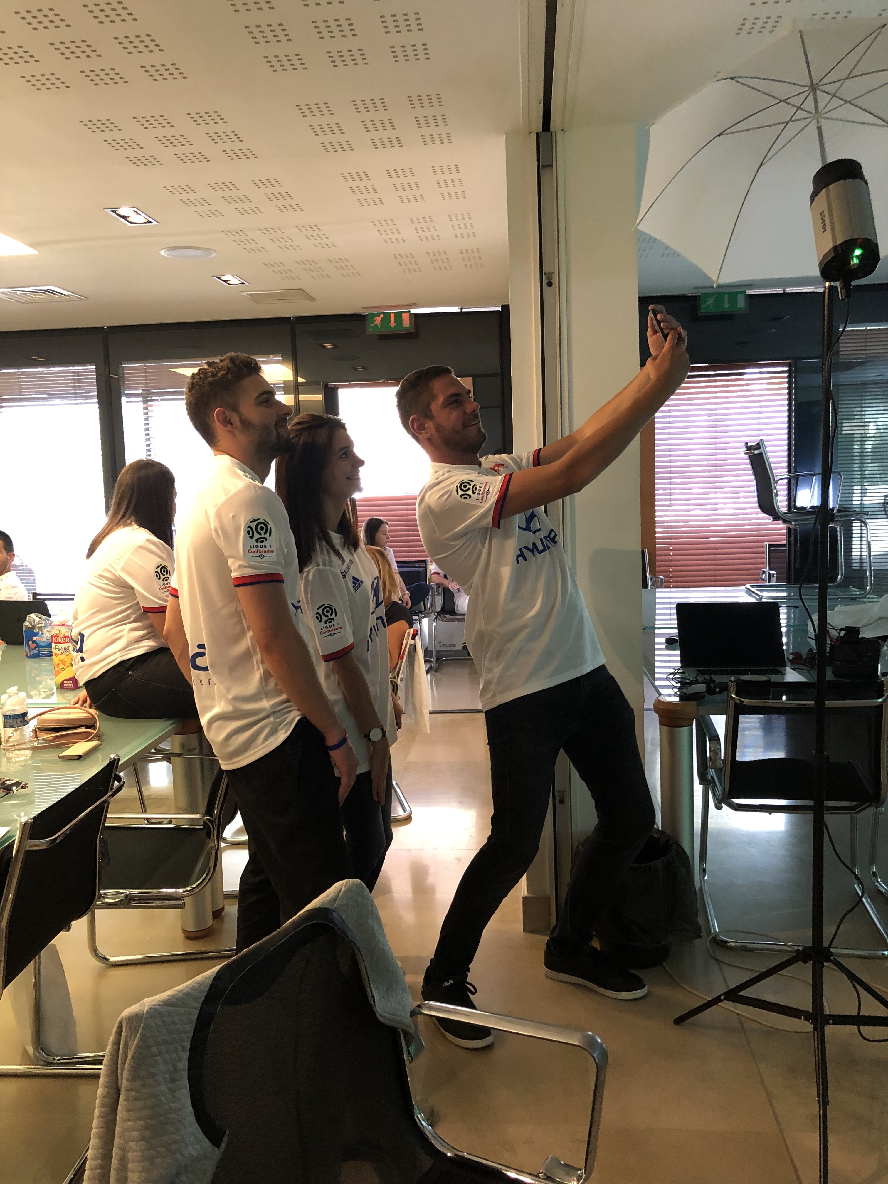 Rassemblés au siège du Groupe Adéquat, les collaborateurs « Fans » se sont prêtés au jeu le temps d’une après-midi. Vêtus du nouveau maillot domicile de l’Olympique Lyonnais et affichant leur plus beau sourire, ils ont pu repartir du shooting avec leur tenue du jour.