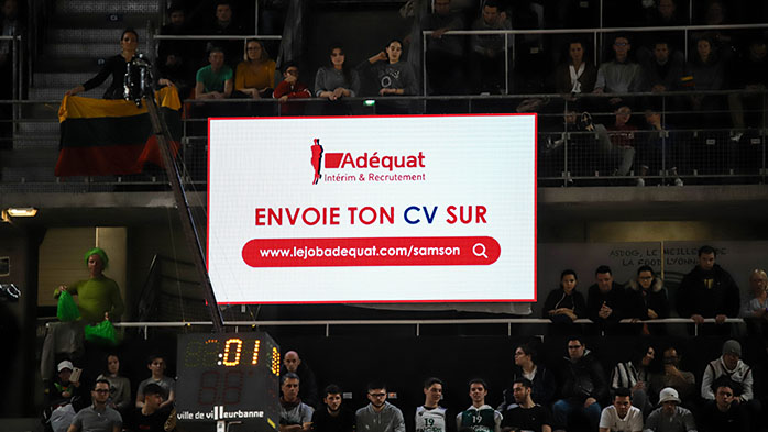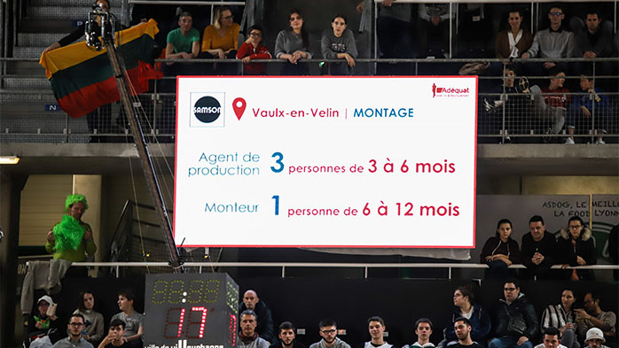 Vidéos sur les écrans géants et les écrans du village VIP, distribution de flyers, Adéquat a su s’approprier l’ensemble des canaux de communication de l’Astroballe et les utiliser de manière optimale.De quoi donner un sérieux coup de projecteur sur le recrutement de son client.