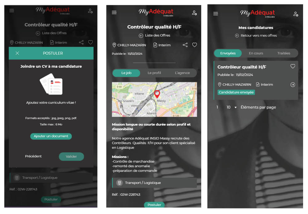 Désormais, vous pouvez accéder, consulter et postuler à vos offres d’emplois directement depuis votre espace MyAdéquat ! Et tout cela, en quelques clics.
